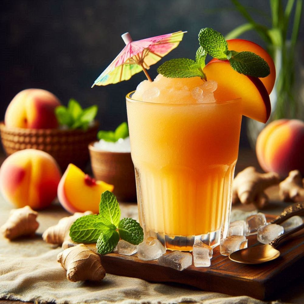 Preparation: Brew hot ginger tea and let it cool or brew it cold. Blend with frozen peach slices and honey for a delicious slushie.
