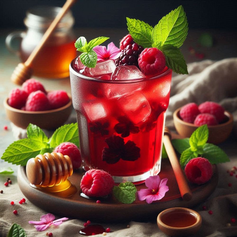 Preparation: Brew hot hibiscus tea and let it cool or brew it cold. Add fresh raspberries and honey if desired. Serve over ice.