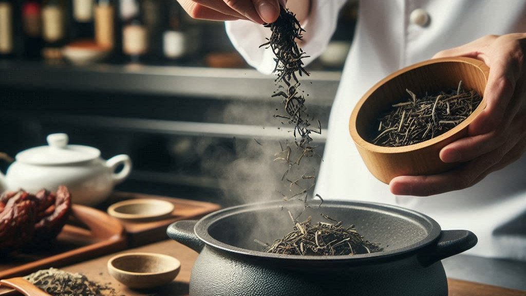 Tea can add a unique flavor to various recipes. Use brewed tea as a base for soups and stews to impart a subtle, earthy taste. Tea leaves can also be used in baking; for instance, add Japanese Matcha or ground Earl Grey tea leaves to biscuit or cake mixture for a distinctive flavour. Additionally, tea-smoked meats are a culinary delicacy where tea leaves are used to smoke meats, imparting a unique and aromatic taste.