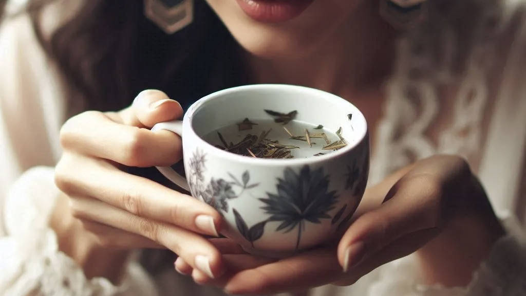 After drinking a cup of loose-leaf tea, a small amount of liquid is left at the bottom along with a few of the leaves. The cup is then inverted onto a saucer, and the patterns formed by the leaves are interpreted to predict the future.